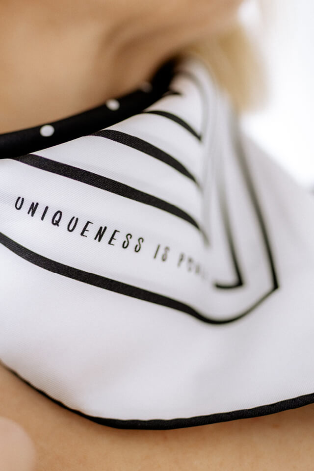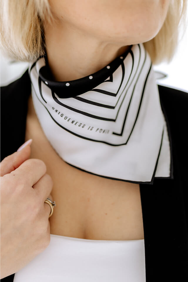 Dieses luxuriöse Seidentuch ist doppelseitig bedruckt und damit vielseitig einsetzbar – als Bandana, Halstuch, Haarband oder stilvolles Accessoire, das jedem Outfit Stärke und Klarheit verleiht. MUSE Eclipse erinnert daran, dass wahre Kraft aus der eigenen Einzigartigkeit entsteht.